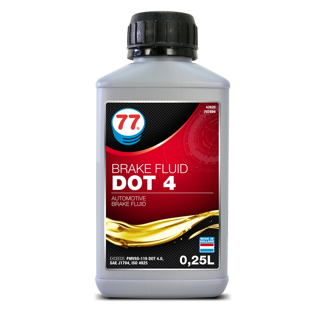 Brake Fluid DOT 4 är till för användning i skiv, trum och Anti Brake Systems (ABS) där en DOT 4-vätska föreskrivs För alla kommersiella fordon, personbilar och motorcyklar som arbetar under måttliga till svåra förhållanden, där en DOT 4-vätska föreskrivs. Överskrider prestandakraven i USA: s federala motorfordonssäkerhetsstandard (FMVSS) 116 DOT 4. Bör aldrig användas istället för eller blandas med silikonbaserade bromsvätskor FMVSS 116: DOT 4, SAE J 1704, ISO 4925 Class 4