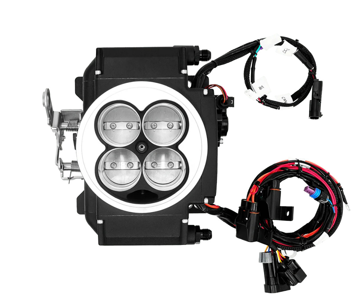 Svart | 5" Skärm Killshot Fusion bränsleinsprutningssystem är en perfekt ersättare för 4-portsförgasare. Ett komplett, självlärande insprutningssystem för bästa verkningsgrad, högre effekt och bättre bränsleekonomi. Fyra 100 lbs./tim. injektorer. 32-bits ECU teknologi ger snabbare och mer precis respons på input-/outputsignaler, strömstyrka och varvtal. Intregrerade TPS, MAP (3 bars) och IAT-sensorer. Inbyggd timing control. Anpassad styrning för tomgångs- och bränsletillförselkontroll. 5" Hi-Res handenhet med klar och tydlig display. Utgång för styrning av två elfläktar. Step retard för lustgasstyrning. Stöder upp till 650 hk (sugmotor). Passar 4150 standard bore insug. Komplett sats med högkvalitets 4.9 bredbandslambda, kabelstam, monteringssats och monteringsanvisningar.