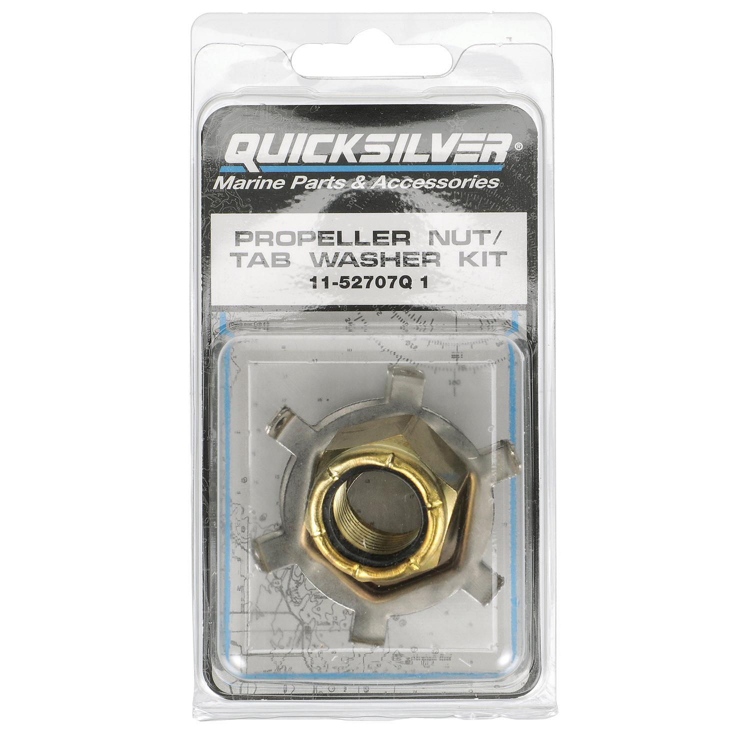 Propellermutter-kit. Passar Mercury/Mariner 75 hk och uppåt förutom 225 EFI 4-takt men passar även MerCruiser Alpha One och Bravo One-drev. Innehåller propellermutter och låsbricka